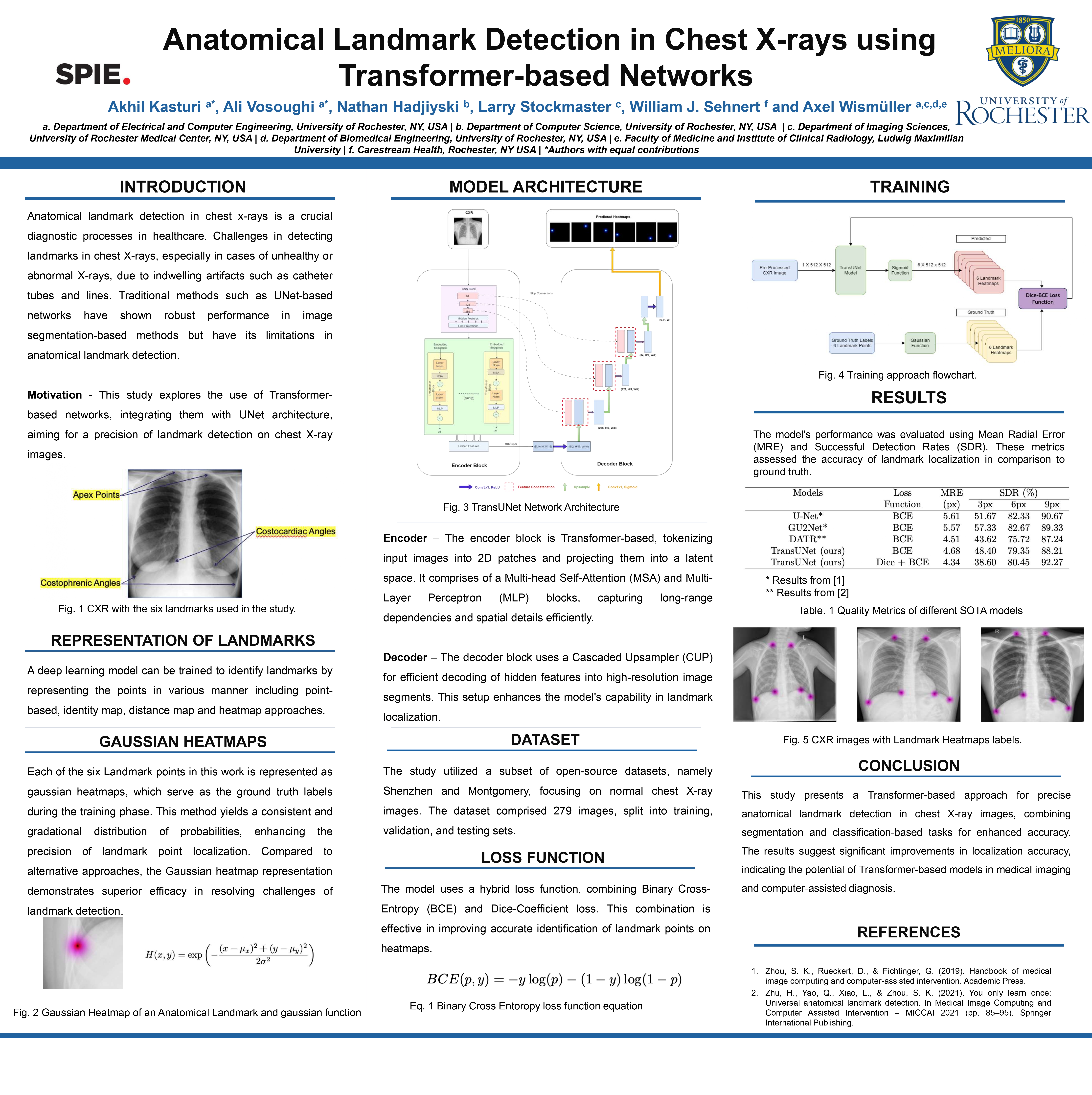 SPIE Medical Imaging 2025Developed transformer-based methods for precise keypoint localization in images using heatmap regression heads. Leveraged DINO self-supervised pre-trained features for weight initialization. Won Best Scientific Poster Award at SPIE Medical Imaging 2024.